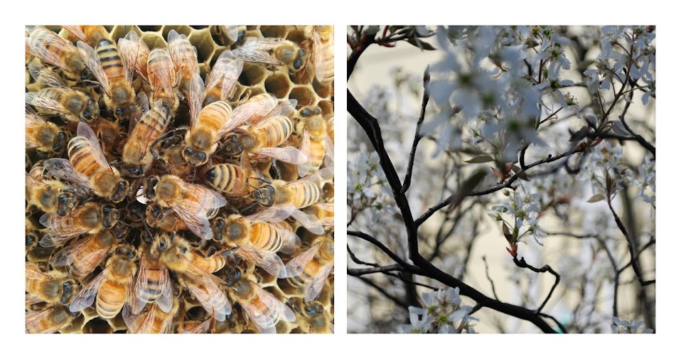 A few of my favorite bee facts: the honeybee colony is a matriarchal society in which 90% of the population are female and their colony is a superorganism where the interactions of the individual members add up to benefit the entire colony.